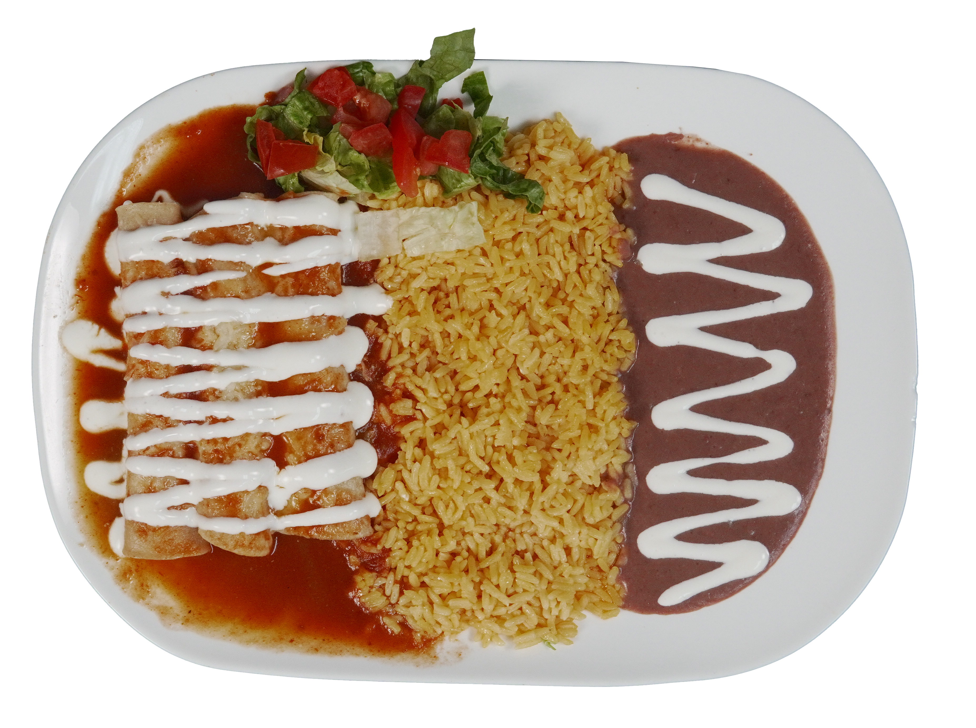Comes with Rice, Beans, Cheese, Choice Of Meat, Green Salsa Or Red And Topped With Sour Cream. Steak, Beef, Chicken or Carnitas